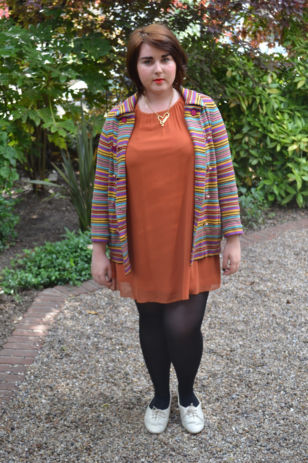 As any of my teachers would have told you, I’m a natural troublemaker. A particular boat-rocker, I have a knack for sensing what I’m meant to not do… and doing it. So since time immemorial, fat girls have been told that a) thou shalt not wear horizontal stripes and b) God will smite those chubsters who wear a double-breasted anything. Naturally, when I set eyes on this Marc by Marc Jacobs jacket, I was enraptured. In its own right, it is a beautiful jacket. It’s exactly the right size, shape and length. The colours are simply perfect. The buttons are beauteous. There’s something utterly delicious about this jacket and yet, for me, picking up this jacket in the shop and it being a label ‘L’, it should have screamed ‘NO, BETHANY, PUT ME DOWN’. So I tried it on. And I loved it even more. Somehow, I just don’t care that it’s both horizontal-striped and double breasted. It’s me in a jacket: obnoxious, bright, difficult and loud. When I look at myself in the mirror wearing this jacket, I simply can’t tell if it ‘suits’ me or not, if the stripes make me look twice my size and if the double-breast has the same effect, but I do feel happy. I don’t wear designer clothes often, if partly because Marc Jacobs is one of the few designers that makes clothes in my size, so this is a beautiful and rare gem for me. In short, this post is meant to motivate y’all out of adhering to the frighteningly restrictive ‘style rules’ the fashion press like to invent. Every time I read an article on ‘how to dress for your size/shape’, I want to stick pins in my eyes. Evidently journalists are not explaining to me how to lift my arms or button up a dress. They are dictating what ‘looks good’ on an ‘apple’, ‘pear’, ‘hourglass’, ‘athletic’ or ‘boyish’ shape. Let’s face it: what is more becoming to a lady than confidence and genuine enjoyment? This, friends, is how I know this jacket is a winner. It may laugh in the face of fashion journo rules, and yet when I wear it, I’m filled with an uncommon joy and priceless delight. Go forth and break the rules.