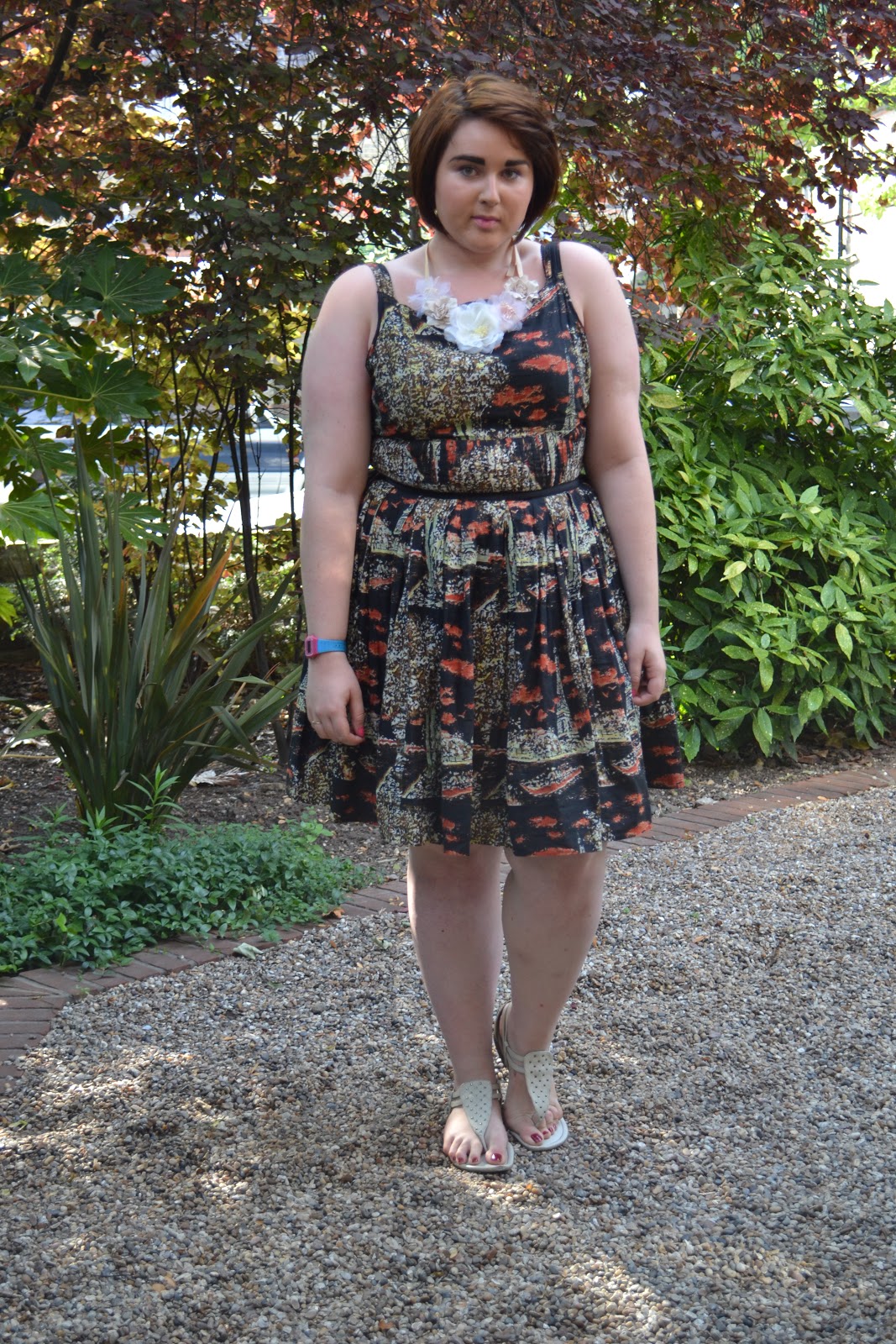 Since getting my ‘useful black blazer’ I’ve worn it pretty much non-stop (apart from when I sleep, silly), but on Friday I decided it was far too warm to wear a jacket. I’d bought this dress a year ago to wear to a friend’s birthday barbecue, and had recently unearthed it when I had a big, big tidy-out of my clothes, so I’m pleased to report that in addition to culling a lot of stuff, I’m also adding new-old things to my repertoire. Notice how I’m keeping up my decision to stop covering my legs so much? Yeah, the sky hasn’t fallen yet. I’ll probably keep it up.