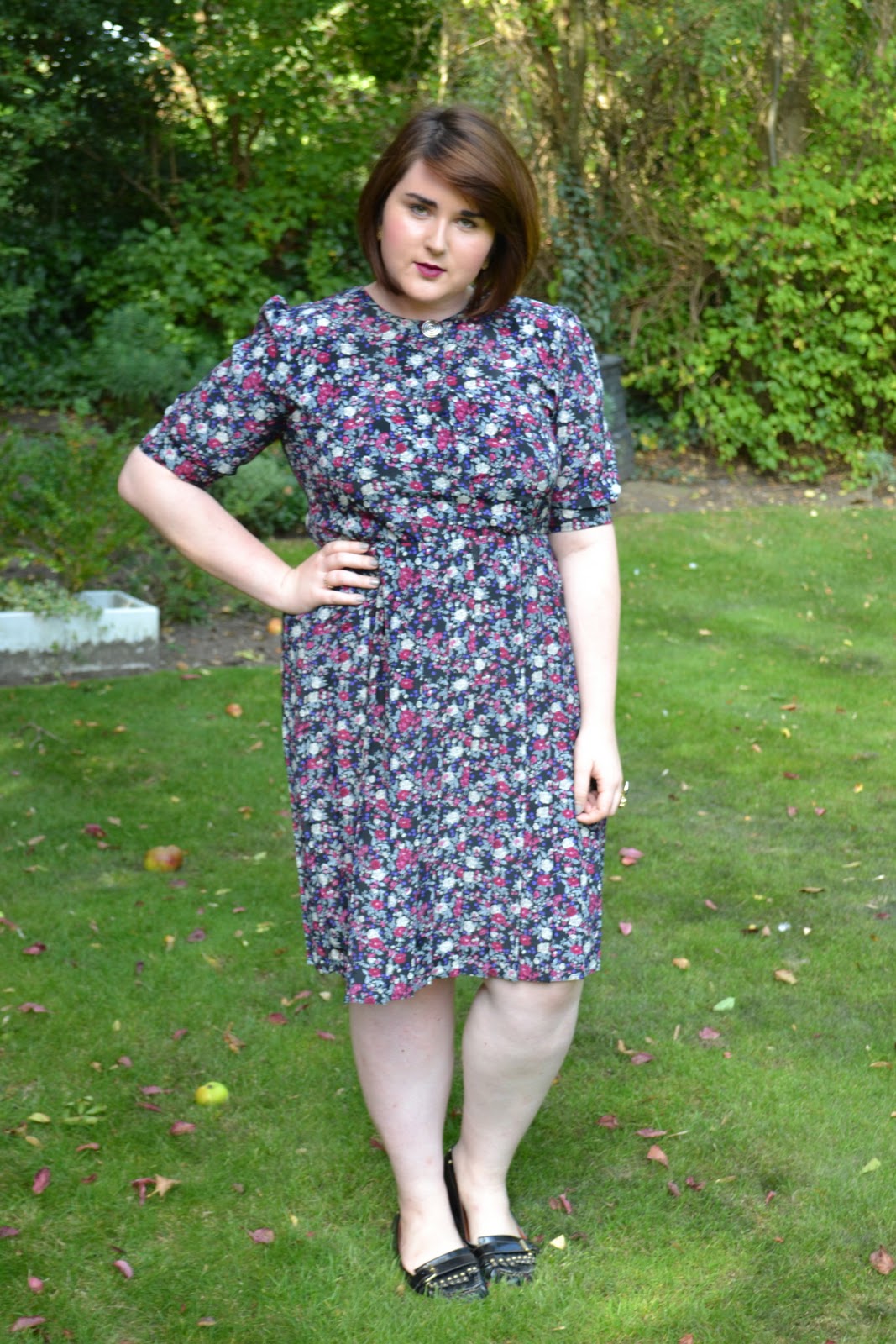 So, I was at the bus stop the other day. The electronic indicator said I had 3 minutes to wait for my bus. That’s fine, I thought. 3 minutes is fine. The bus stop is right outside a charity shop, and a woman was looking at a dress that caught my eye. She put it down, I ran in, grabbed the dress, grabbed the dress behind it too because it was amazing, ran to the counter, paid my money and ran out again, in time for my bus! I don’t usually charity-shop but that’s only because I assume that any of the stuff they have in my size will be a bit rubbish. On this occasion, I found two proper gems. This dress is actually the second dress, not the one that made me run in there in the first place.