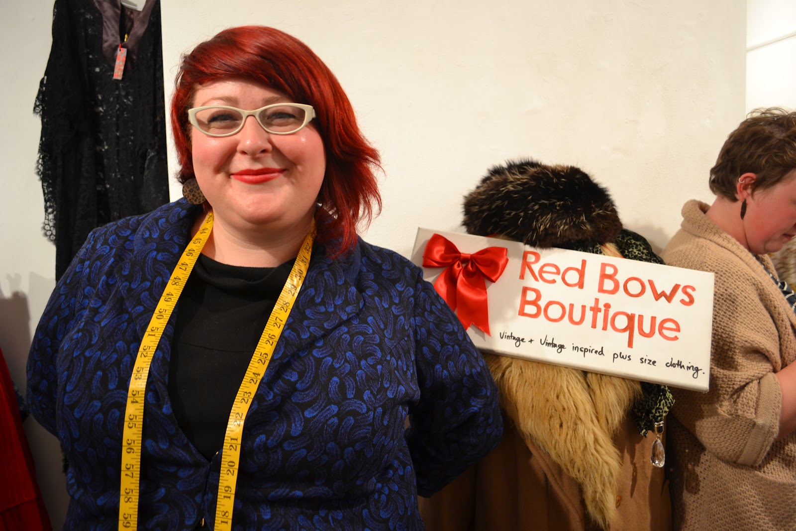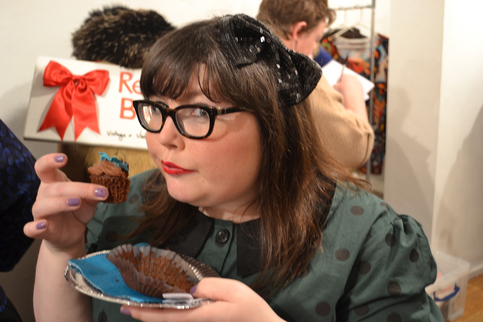 One of the things I was most excited about during Plus London Two was seeing Michelle of Red Bows Boutique! She is a wonderful woman doing a wonderful job of selling plus-size vintage, and I make no secret of how much I adore her stuff! I relieved her of one absolutely brilliant vintage dress that you’ll see on here soon. There weren’t any mirrors in the venue, so I decided the way to find out if the dress looked any good was to nip into the pop-up photography studio and have a photo taken. In the short space between Michelle’s rails and the pop-up studio, I was met with gasps of delight at my cutesy dress. I wholeheartedly approved of the photos, so I guess it’s a winner!